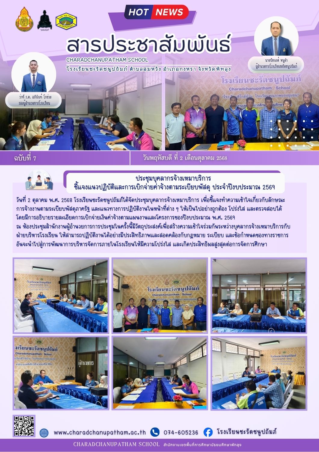 ประชุมบุคลากรจ้างเหมาบริการ ชี้แจงแนวปฏิบัติและการเบิกจ่ายค่าจ้างตามระเบียบพัสดุ ประจำปีงบประมาณ 2569