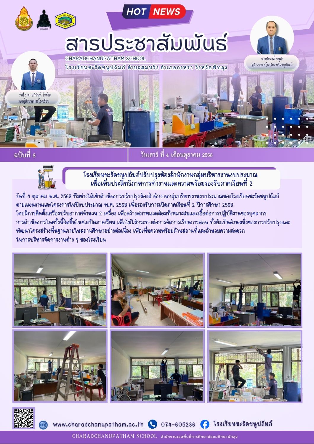 โรงเรียนชะรัดชนูปถัมภ์ปรับปรุงห้องสำนักงานกลุ่มบริหารงานงบประมาณ เพื่อเพิ่มประสิทธิภาพการทำงานและความพร้อมรองรับภาคเรียนที่ 2