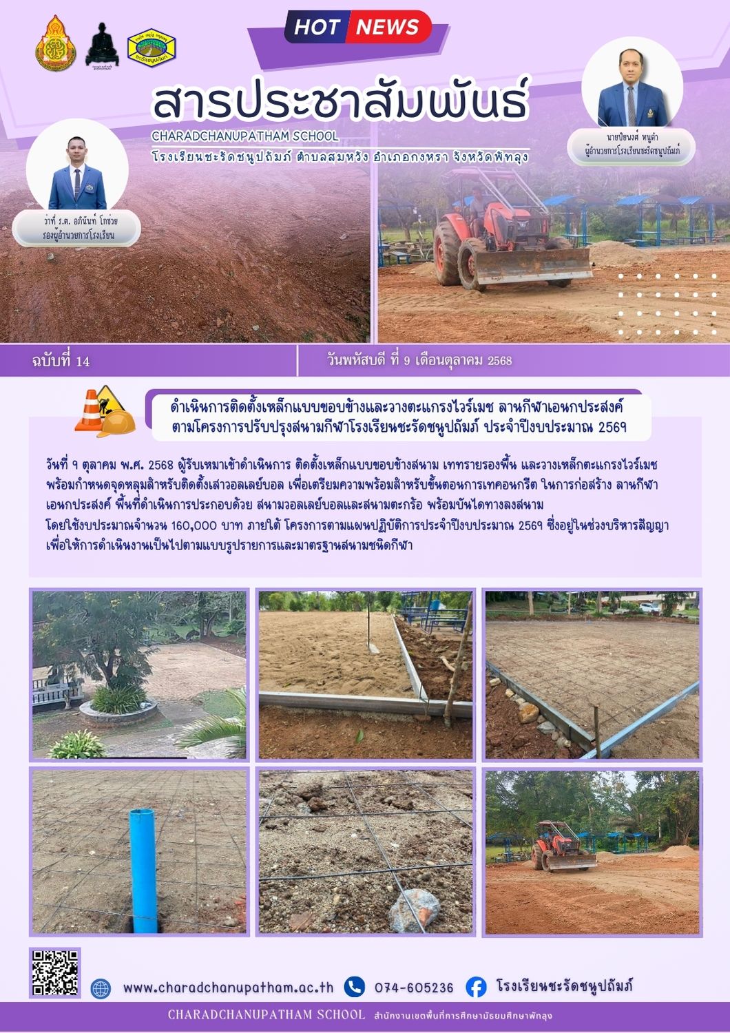 ดำเนินการติดตั้งเหล็กแบบขอบข้างและวางตะแกรงไวร์เมช ลานกีฬาเอนกประสงค์ ตามโครงการปรับปรุงสนามกีฬาโรงเรียนชะรัดชนูปถัมภ์ ประจำปีงบประมาณ 2569