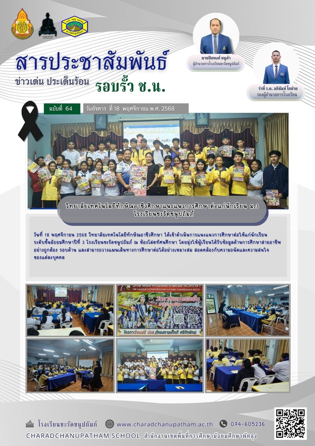 วิทยาลัยเทคโนโลยีทักษิณอาชีวศึกษาแนะแนวการศึกษาต่อแก่นักเรียน ม.3 โรงเรียนชะรัดชนูปถัมภ์