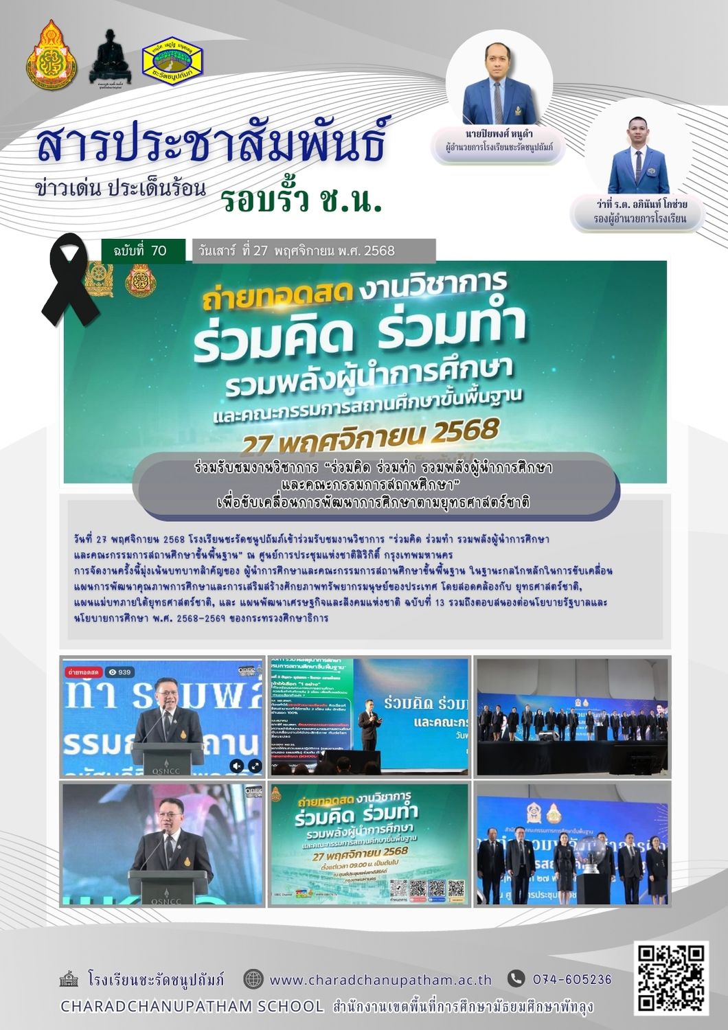 ร่วมรับชมงานวิชาการ “ร่วมคิด ร่วมทํา รวมพลังผู้นําการศึกษา และคณะกรรมการสถานศึกษา” เพื่อขับเคลื่อนการพัฒนาการศึกษาตามยุทธศาสตร์ชาติ