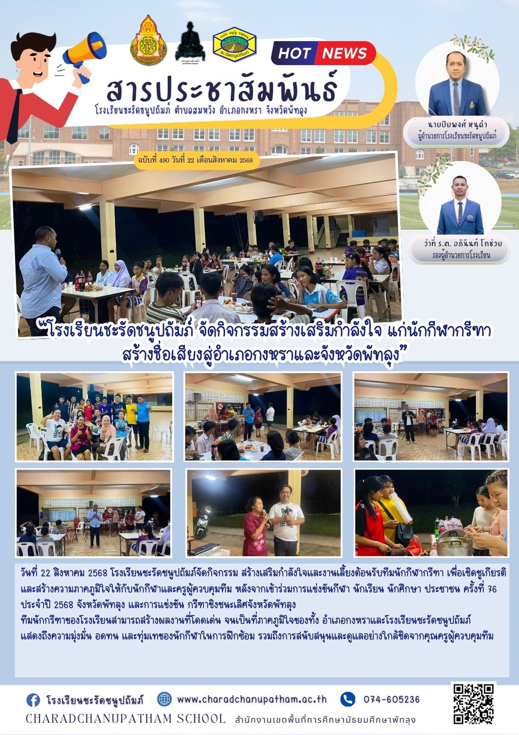 “โรงเรียนชะรัดชนูปถัมภ์ จัดกิจกรรมสร้างเสริมกำลังใจ แก่นักกีฬากรีฑา สร้างชื่อเสียงสู่อำเภอกงหราและจังหวัดพัทลุง”