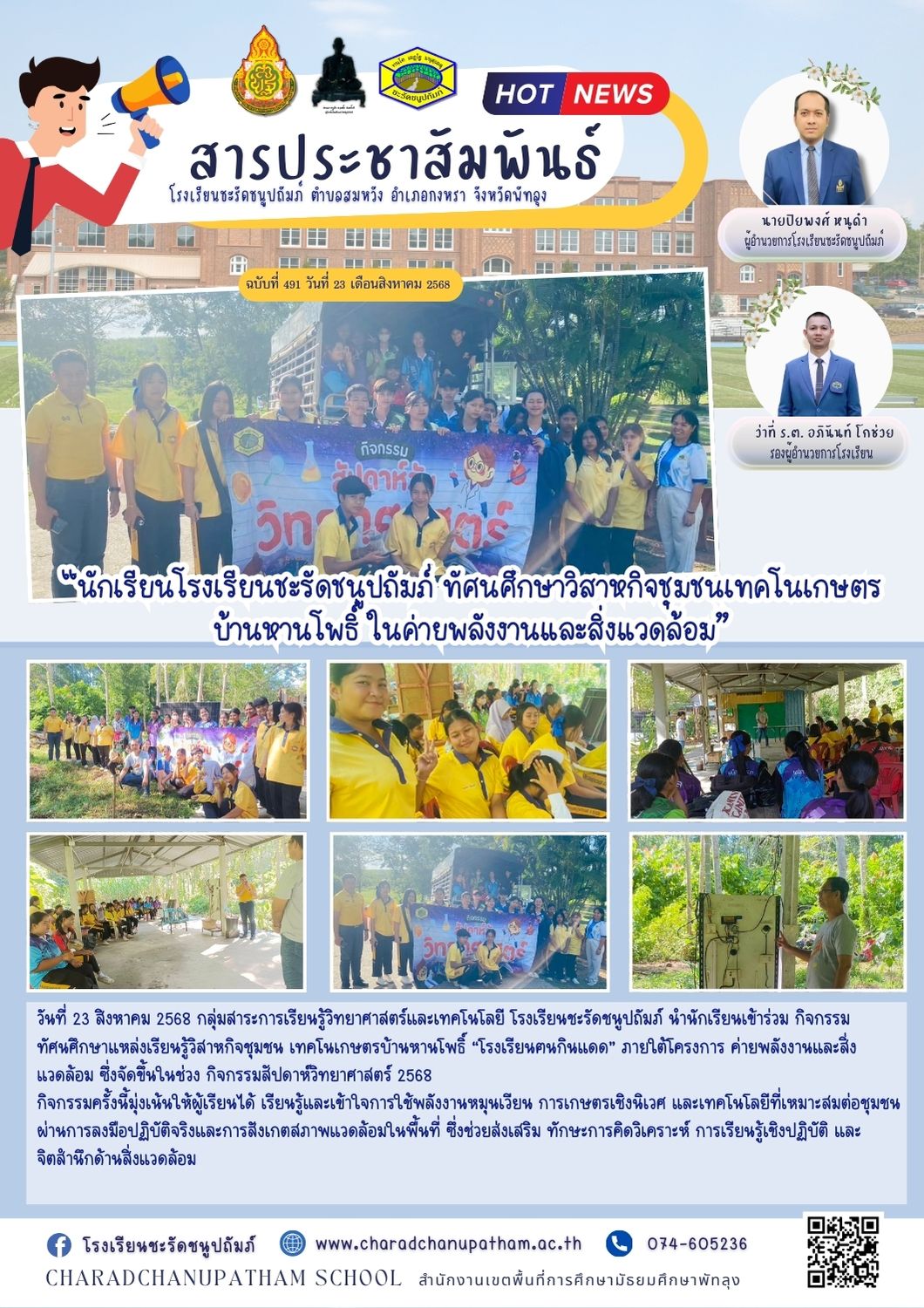 “นักเรียนโรงเรียนชะรัดชนูปถัมภ์ ทัศนศึกษาวิสาหกิจชุมชนเทคโนเกษตรบ้านหานโพธิ์ ในค่ายพลังงานและสิ่งแวดล้อม”