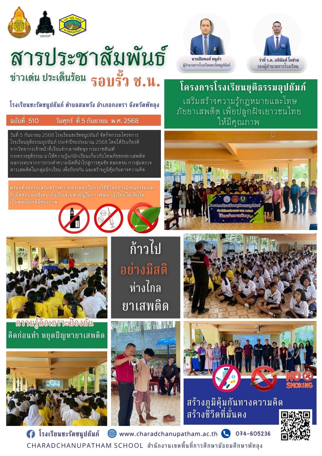 โครงการโรงเรียนยุติธรรมอุปถัมภ์ เสริมสร้างความรู้กฎหมายและโทษ ภัยยาเสพติด เพื่อปลูกฝังเยาวชนไทย ให้มีคุณภาพ
