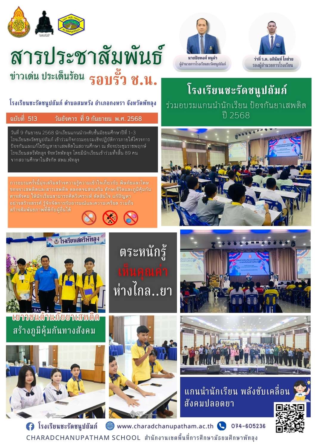 โรงเรียนชะรัดชนูปถัมภ์ ร่วมอบรมแกนนำนักเรียน ป้องกันยาเสพติด ปี 2568