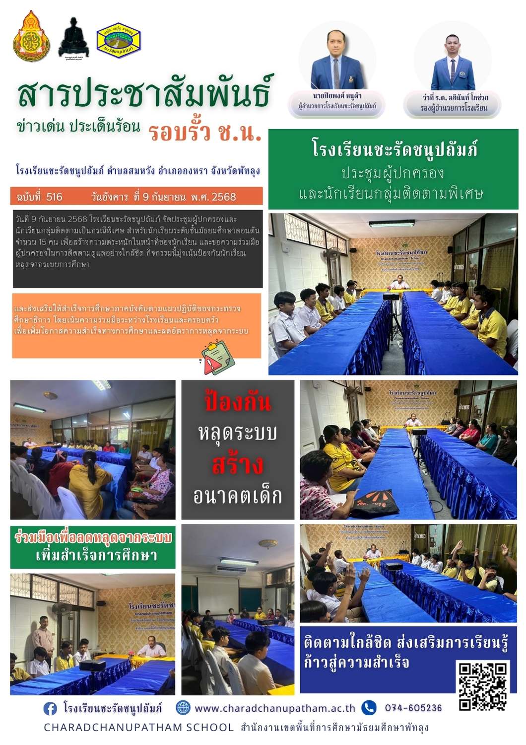 โรงเรียนชะรัดชนูปถัมภ์ ประชุมผู้ปกครอง และนักเรียนกลุ่มติดตามพิเศษ