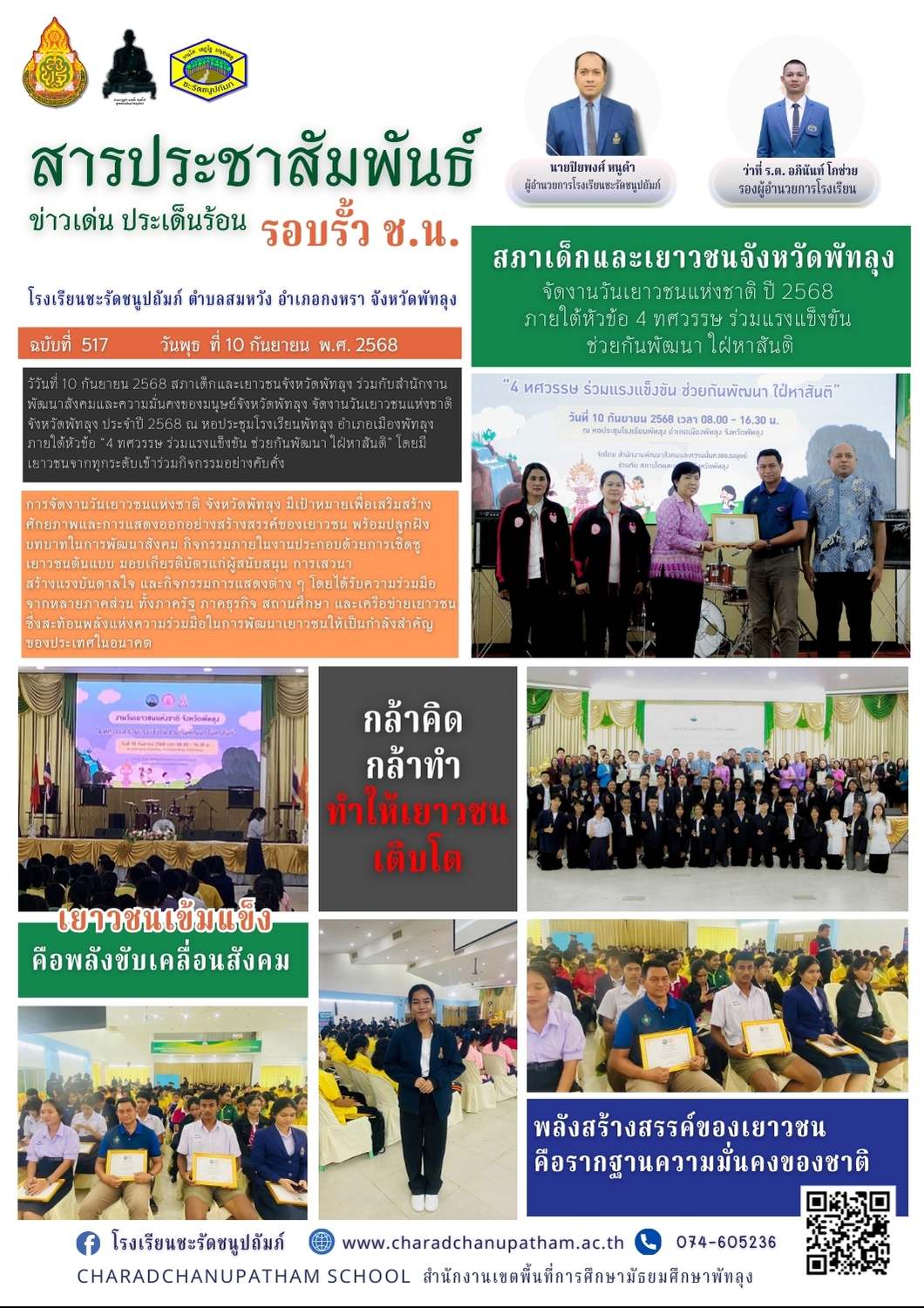 สภาเด็กและเยาวชนจังหวัดพัทลุง จัดงานวันเยาวชนแห่งชาติ ปี 2568 ภายใต้หัวข้อ 4 ทศวรรษ ร่วมแรงแข็งขัน ช่วยกันพัฒนา ใฝ่หาสันติ