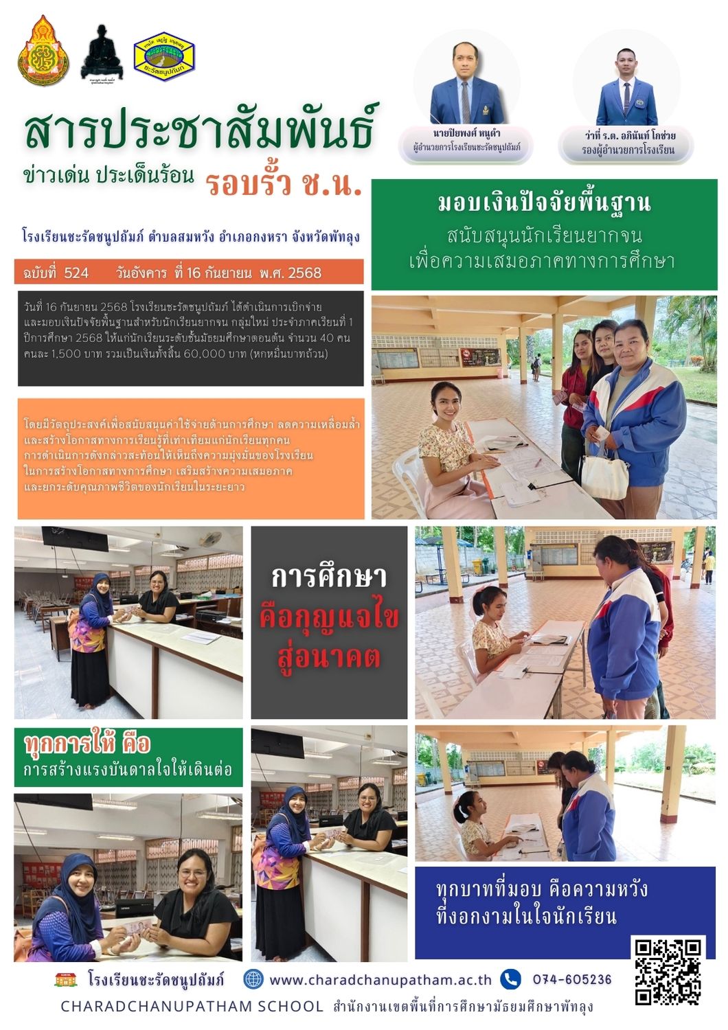 มอบเงินปัจจัยพื้นฐาน สนับสนุนนักเรียนยากจน เพื่อความเสมอภาคทางการศึกษา