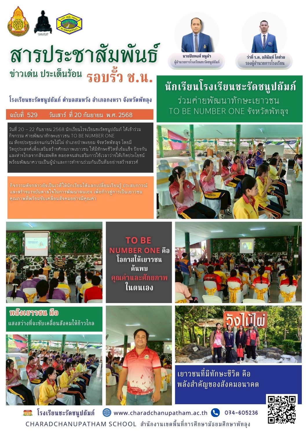 นักเรียนโรงเรียนชะรัดชนูปถัมภ์ ร่วมค่ายพัฒนาทักษะเยาวชน TO BE NUMBER ONE จังหวัดพัทลุง
