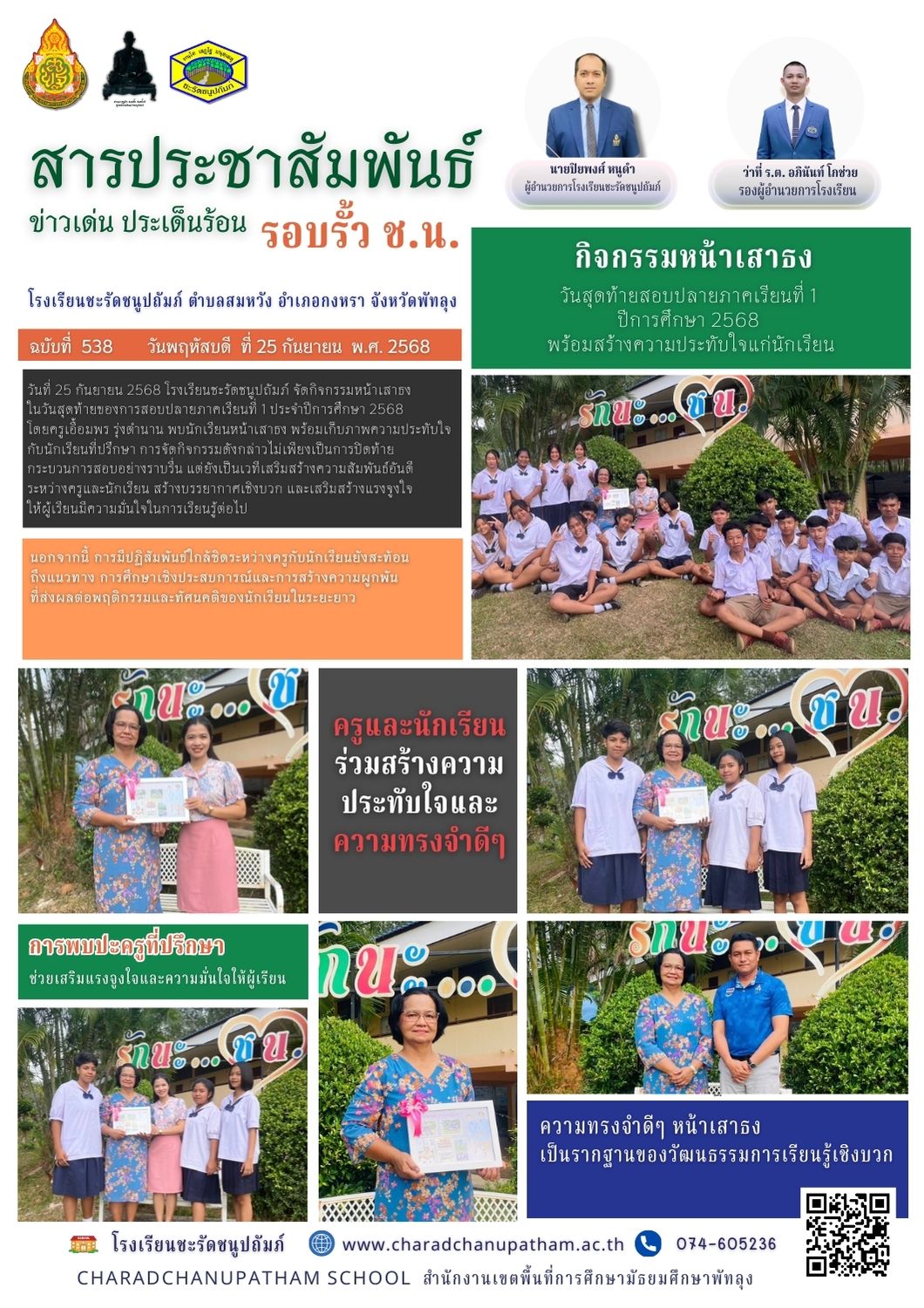 กิจกรรมหน้าเสาธง วันสุดท้ายสอบปลายภาคเรียนที่ 1 ปีการศึกษา 2568 พร้อมสร้างความประทับใจแก่นักเรียน