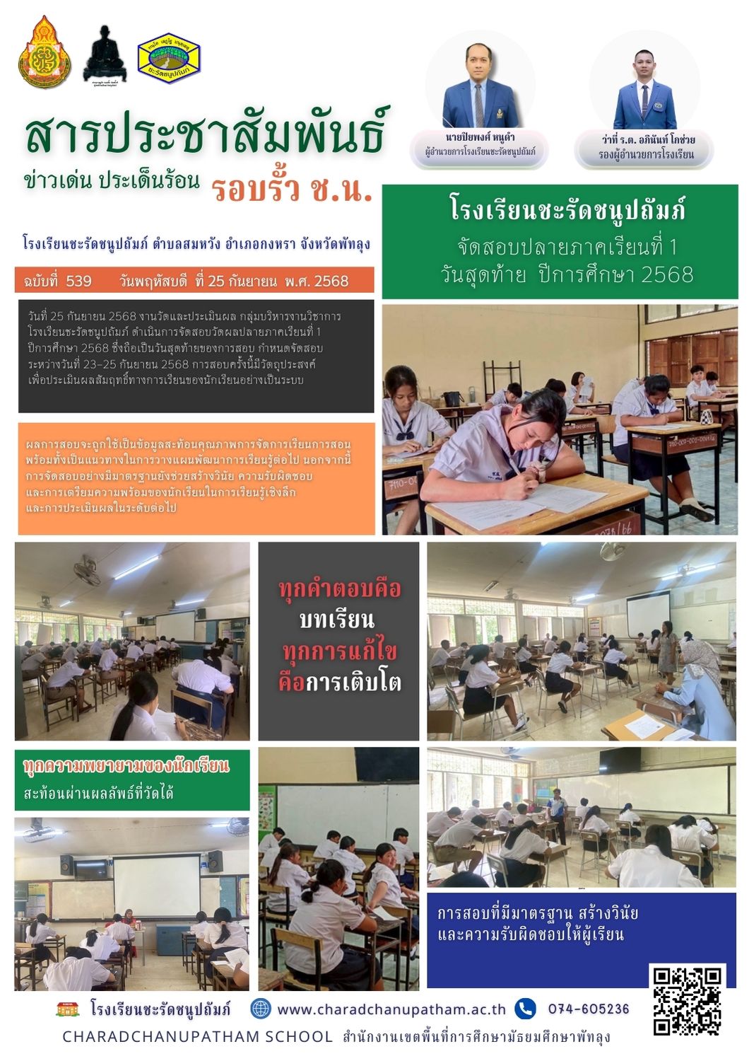 โรงเรียนชะรัดชนูปถัมภ์ จัดสอบปลายภาคเรียนที่ 1 วันสุดท้าย ปีการศึกษา 2568