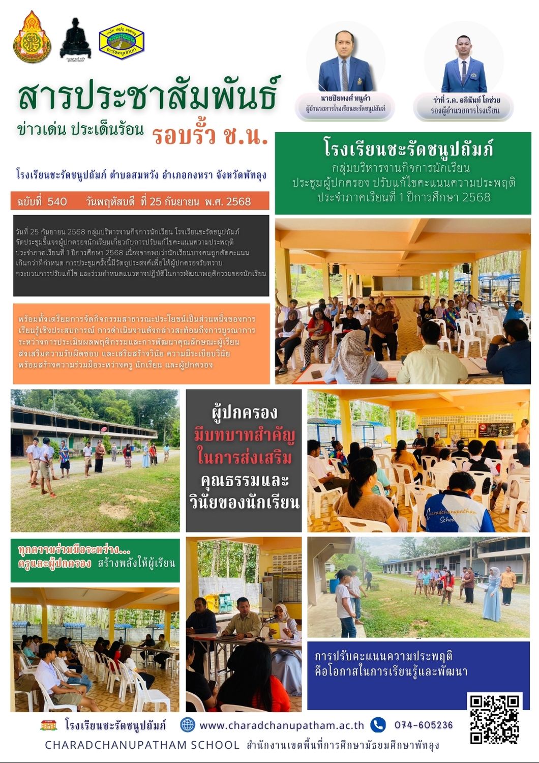 โรงเรียนชะรัดชนูปถัมภ์ กลุ่มบริหารงานกิจการนักเรียน ประชุมผู้ปกครอง ปรับแก้ไขคะแนนความประพฤติประจำภาคเรียนที่ 1 ปีการศึกษา 2568