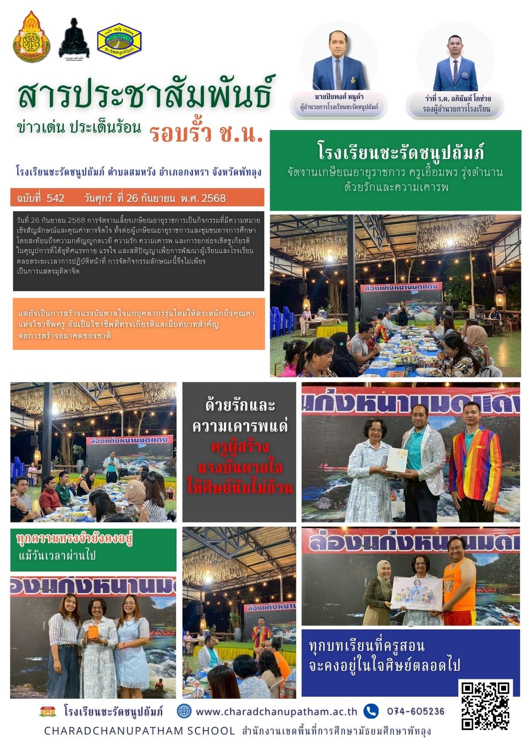 โรงเรียนชะรัดชนูปถัมภ์ จัดงานเกษียณอายุราชการ ครูเอื้อมพร รุ่งตำนาน ด้วยรักและความเคารพ