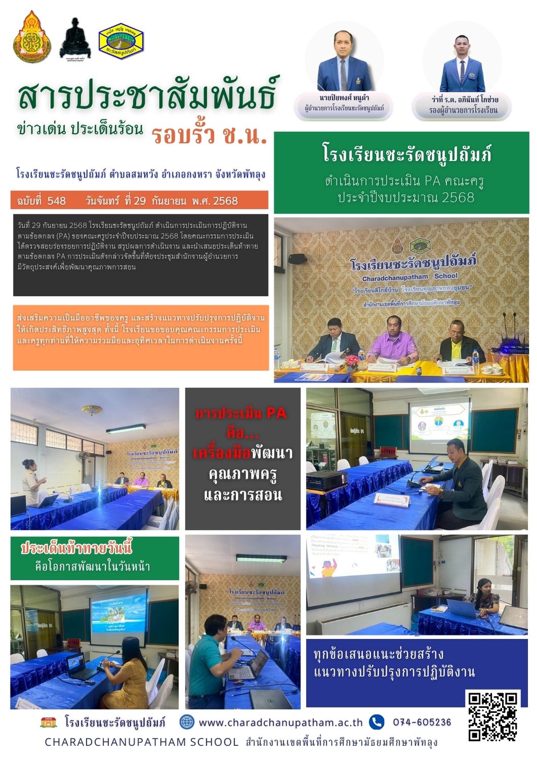 โรงเรียนชะรัดชนูปถัมภ์ ดำเนินการประเมิน PA คณะครู ประจำปีงบประมาณ 2568