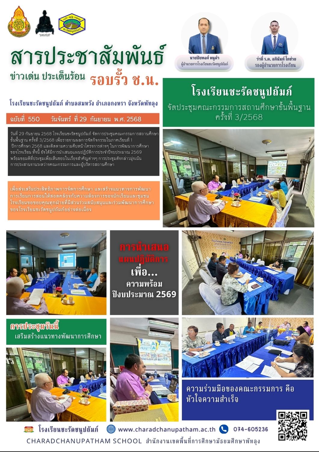 โรงเรียนชะรัดชนูปถัมภ์ จัดประชุมคณะกรรมการสถานศึกษาขั้นพื้นฐาน ครั้งที่ 3/2568