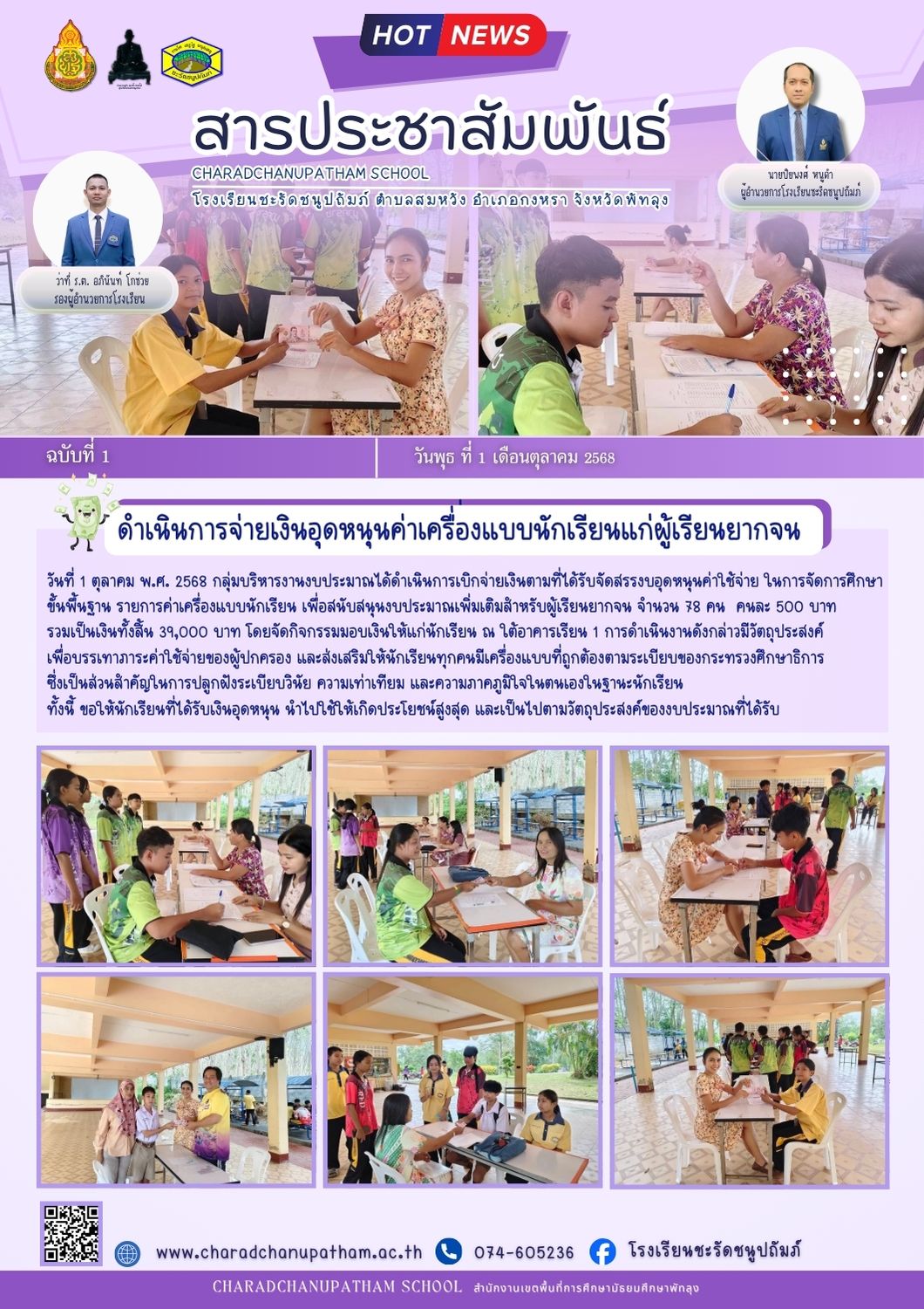 ดำเนินการจ่ายเงินอุดหนุนค่าเครื่องแบบนักเรียนแก่ผู้เรียนยากจน