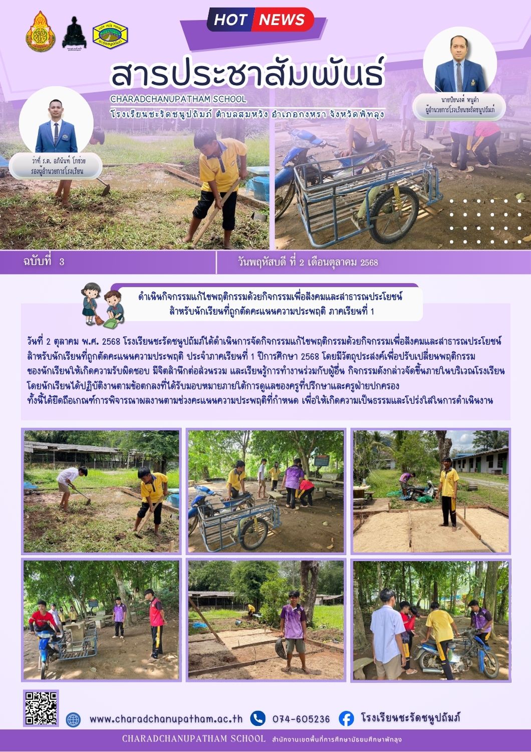 ดำเนินกิจกรรมแก้ไขพฤติกรรมด้วยกิจกรรมเพื่อสังคมและสาธารณประโยชน์ สำหรับนักเรียนที่ถูกตัดคะแนนความประพฤติ ภาคเรียนที่ 1