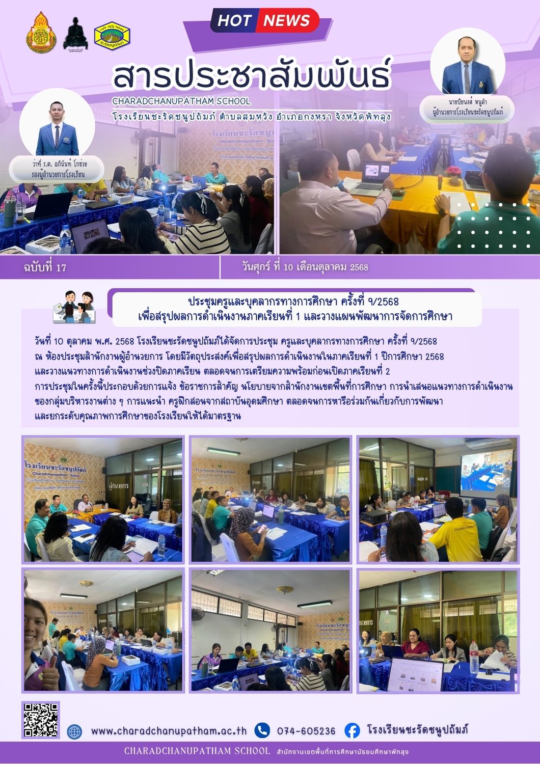 ประชุมครูและบุคลากรทางการศึกษา ครั้งที่ 9/2568 เพื่อสรุปผลการดำเนินงานภาคเรียนที่ 1 และวางแผนพัฒนาการจัดการศึกษา