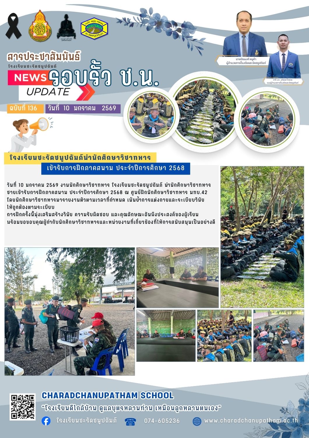 โรงเรียนชะรัดชนูปถัมภ์นำนักศึกษาวิชาทหารเข้ารับการฝึกภาคสนาม ประจำปีการศึกษา 2568