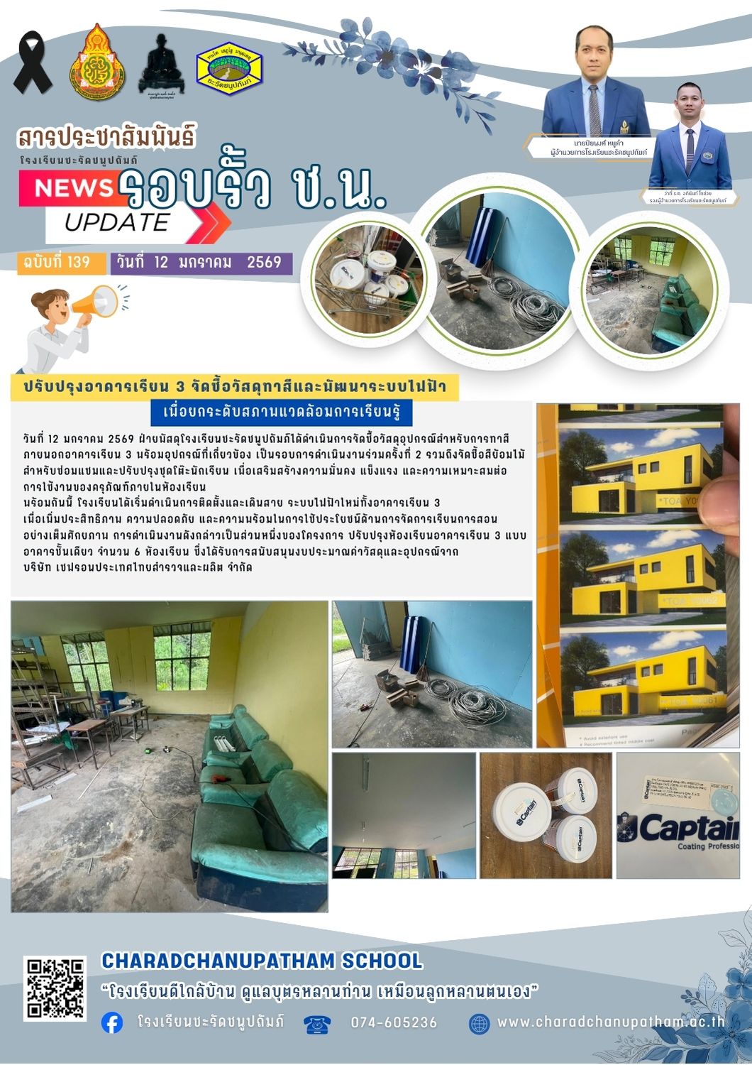 ปรับปรุงอาคารเรียน 3 จัดซื้อวัสดุทาสีและพัฒนาระบบไฟฟ้าเพื่อยกระดับสภาพแวดล้อมการเรียนรู้